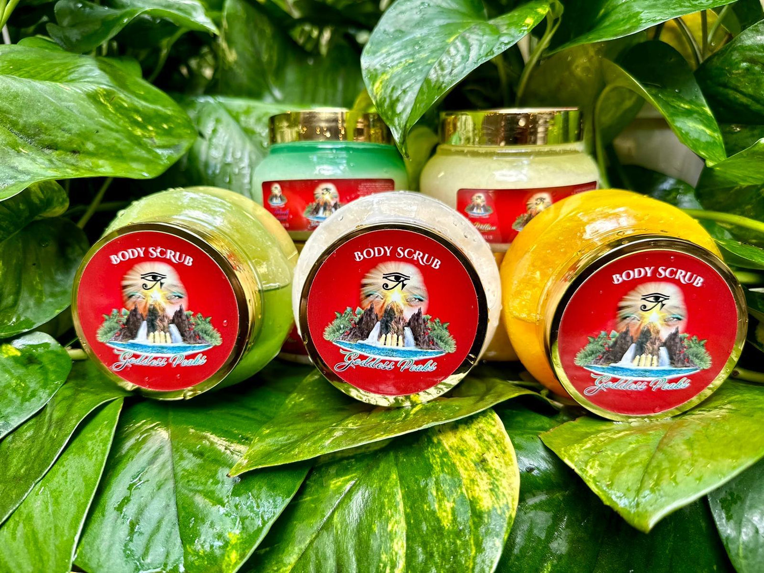 Goddess Peaks Scented Body Scrubs cleanse dead skin, rich in nutrients and antioxidants to restore cracked skin, leaving it supple and smooth.